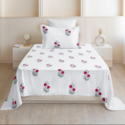 パステルコットンリネンプリント花柄 & 葉防水ベッドシーツ枕カバー付き | 400TC環境にやさしいソフト寝具セット